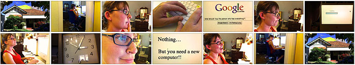 Close Up (CU) of the computer screen which says 'nothing......but you need a new computer!!' |